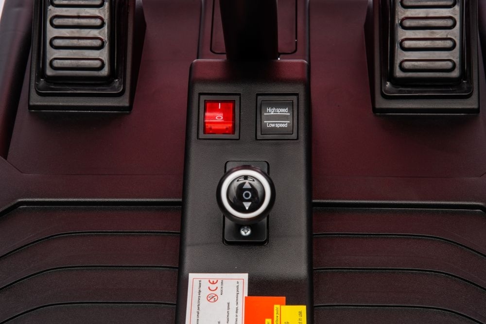 De kinderbuggy is uitgerust met een krachtige 24V accu en rijdt zowel vooruit als achteruit. Dankzij de soft start-functietrekt de buggy rustig op, wat zorgt voor een veilige en comfortabele start zonder schokken. De snelheid is instelbaar met twee standen tot maximaal 8 km per uur.